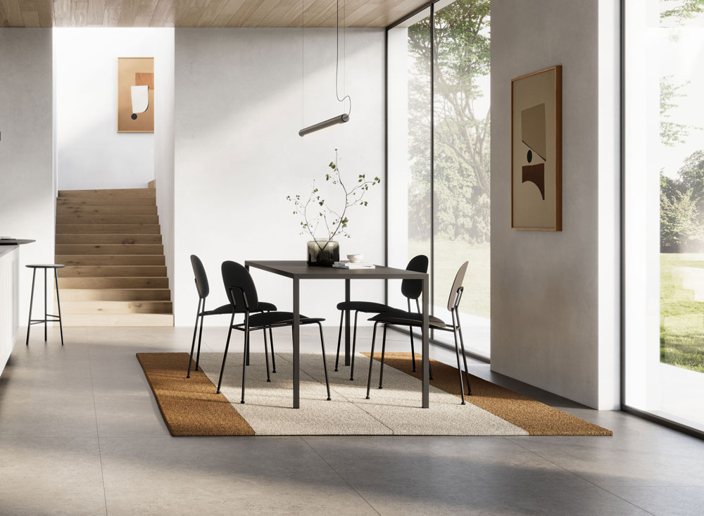 Inoltre, abbinare tavolo e sedie della stessa linea si rivela particolarmente utile in contesti in cui lo spazio è ridotto: un arredo uniforme contribuisce infatti a rendere l’ambiente più armonioso e visivamente ordinato, senza creare eccessive interruzioni stilistiche.